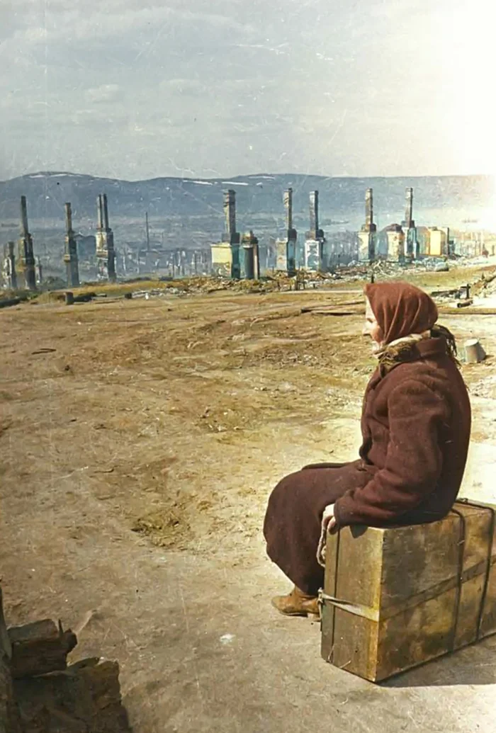 Город Мурманск после немецких бомбардировок, 1940-е годы.
