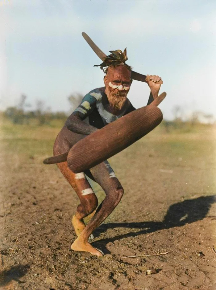 Аборигены Австралии относятся к негроидно-австралоидной расе. У них тёмно-коричневый цвет кожи, волнистые чёрные волосы, широкий нос и сильно выступающие надбровья.