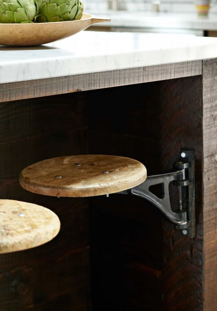 Выдвижные табуреты — практичное решение для маленькой кухни