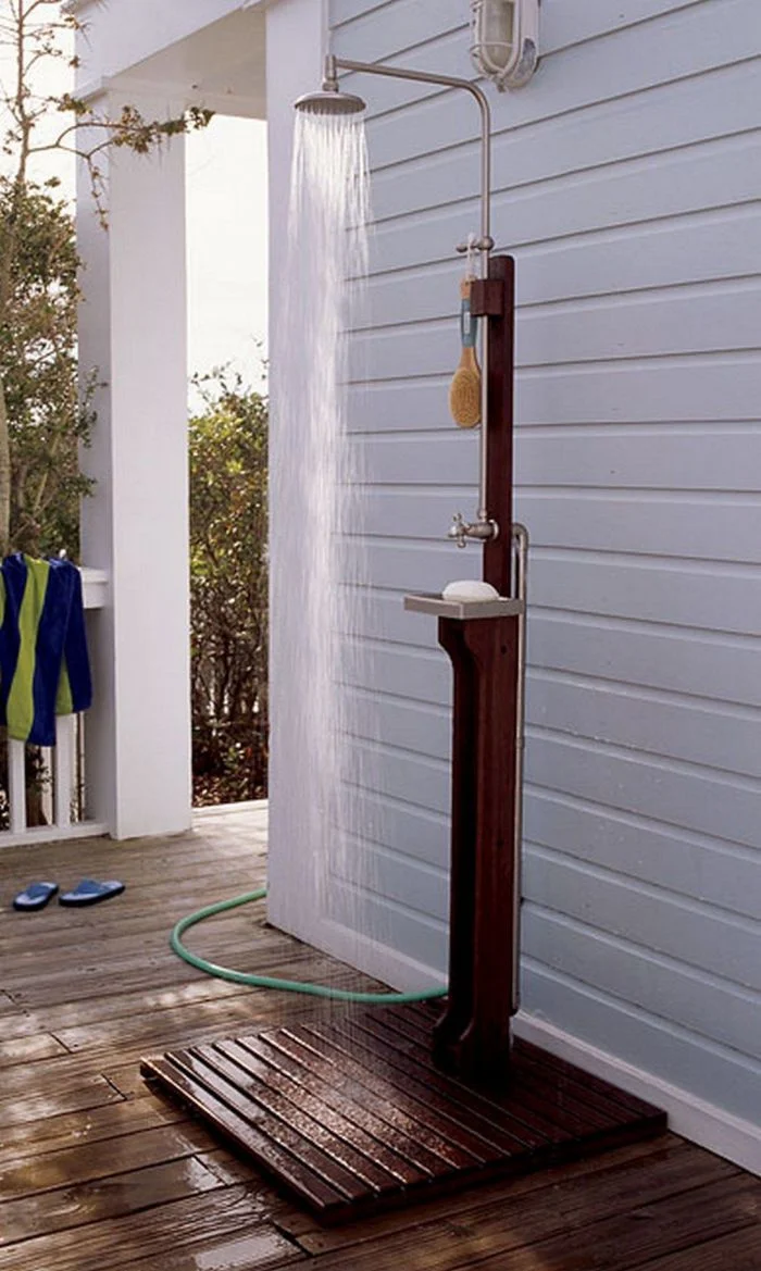 Простые душевые на открытом воздухе — идеальный вариант для летних домиков и отдыха на природе