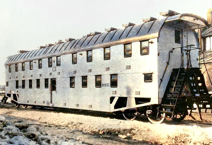 Такие вагоны предназначались для переселения людей на Дальний Восток, а первый этаж был предназначен для перевозки скотины.