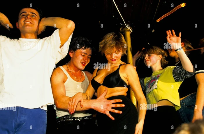 Любители ночной жизни в клубе «Hungry Duc» в Москве, 1997 год.
