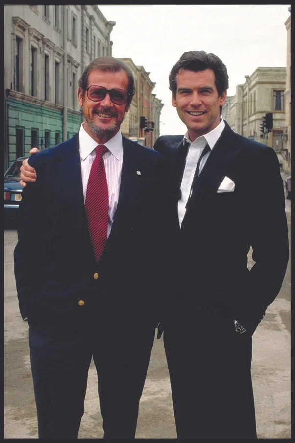 Роджер Мур и Пирс Броснан на съёмках фильма «Золотой глаз». Санкт-Петербург, 1995 год.