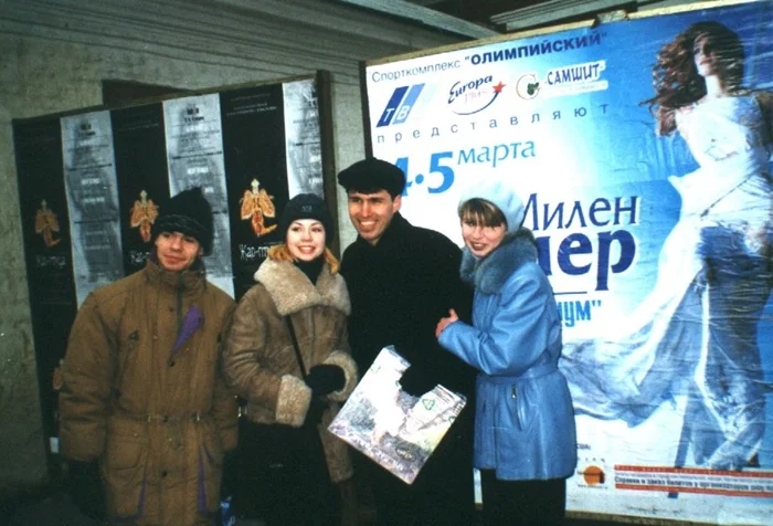 Поклонники Милен Фармер на фоне афиши певицы. Москва, 2000 год.