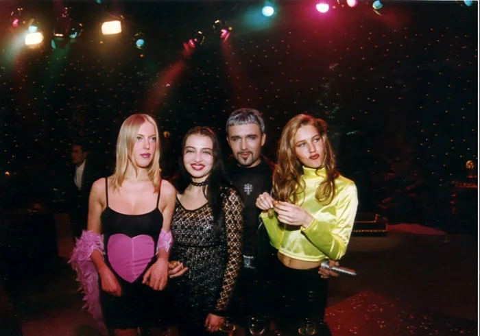 Богдан Титомир с дамами на встрече Нового 1996 года в телецентр «Останкино».