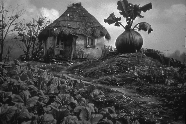Репка, словно живое существо, сопротивляется, ее черные корни оплетают деревню, превращая ее в жуткое подобие живого организма.