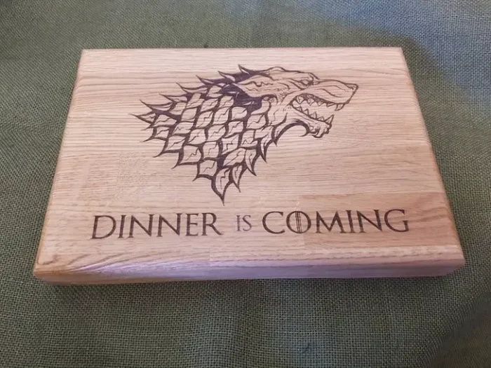 2. Доска с надписью «Ужин приближается» — идеальный элемент для кухни фанатов.