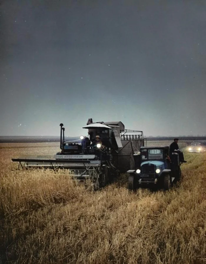 Думаю именно по этой причине на снимке жатва происходит в ночи.
