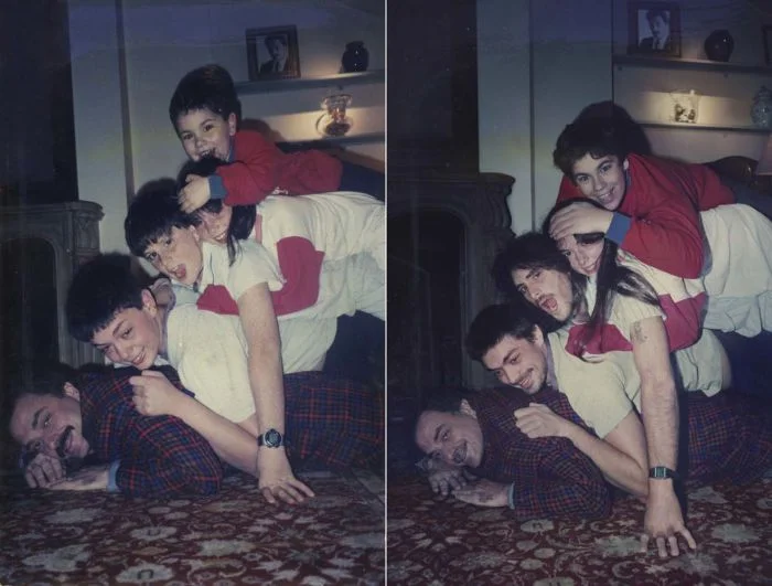 Семейные фото, повторённые спустя много лет