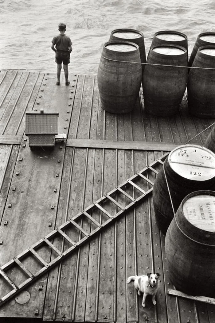 24. Лодка для перевозки виски на реке Рейн, Дюссельдорф, 1957 год. Фото Леонарда Фрида