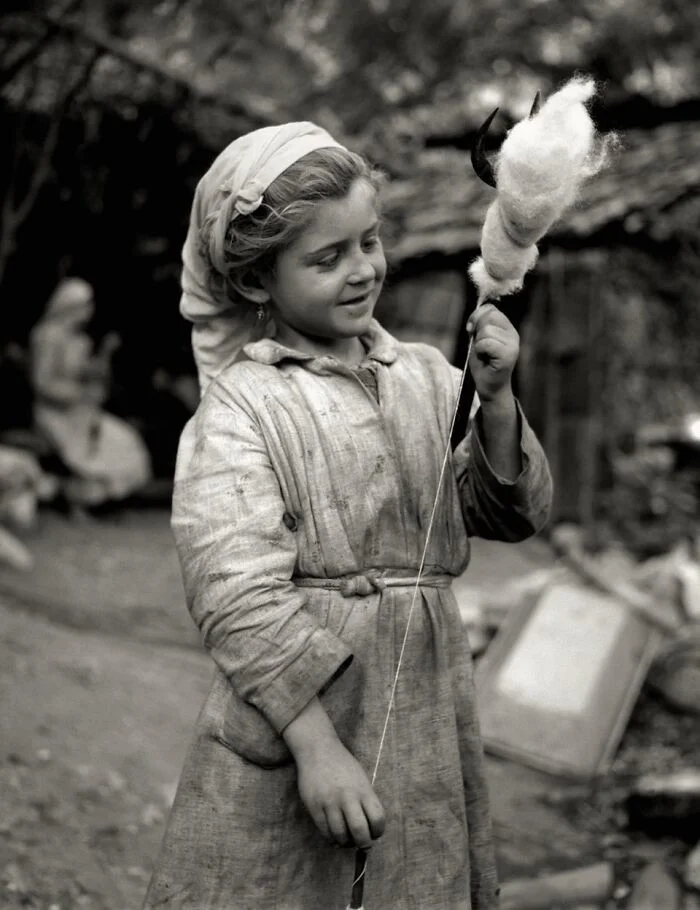 27. Маленькая Саракатсана прядёт шерсть, 1940-е годы. Фото Такиса Тлупаса