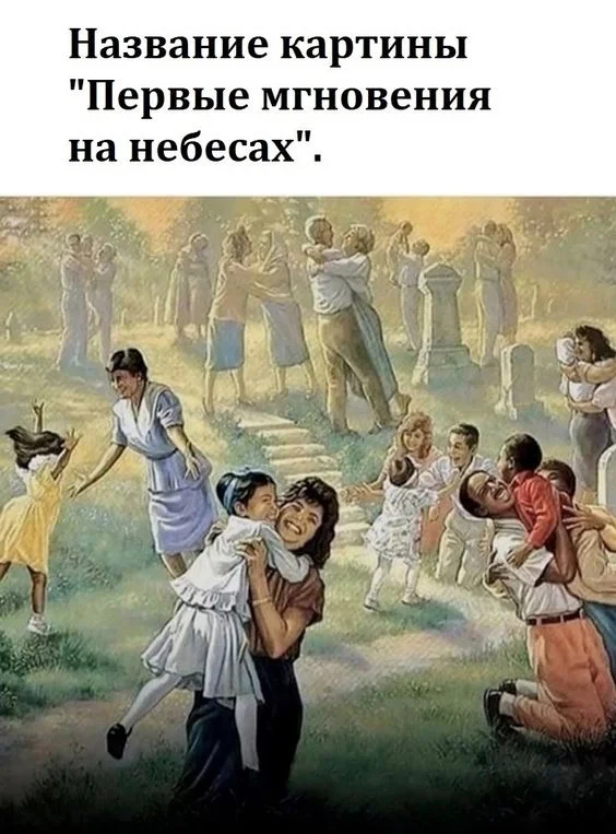 Картинка про небеса явно из "сторожевой башни" свидетелей Иеговы. Чёт детей многовато поумирало одновременно.