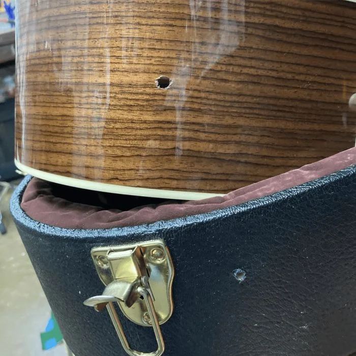 17. Мастер, устанавливая мебель, случайно повредил футляр и гитару.