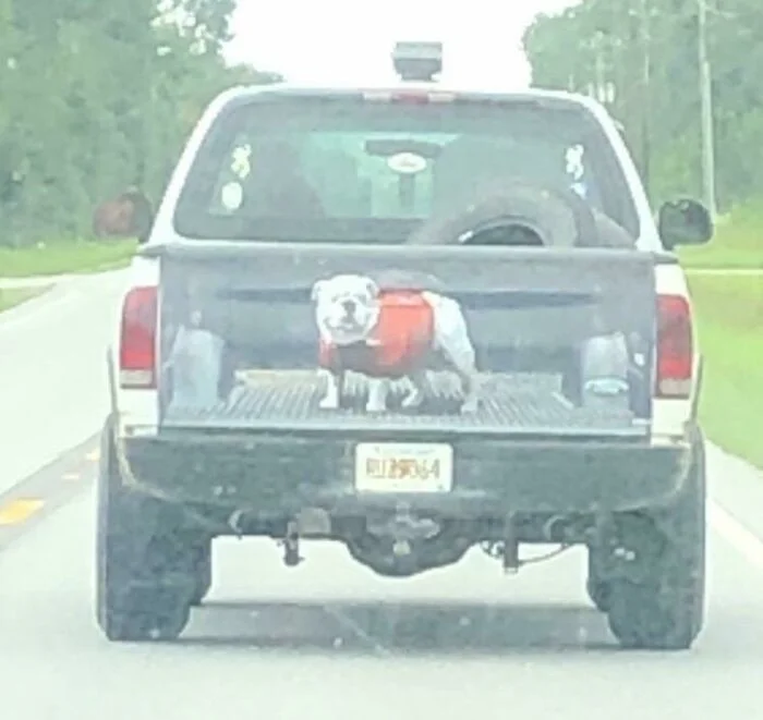 20. Задний борт этого грузовика раскрашен так, будто в кузове сидит бульдог