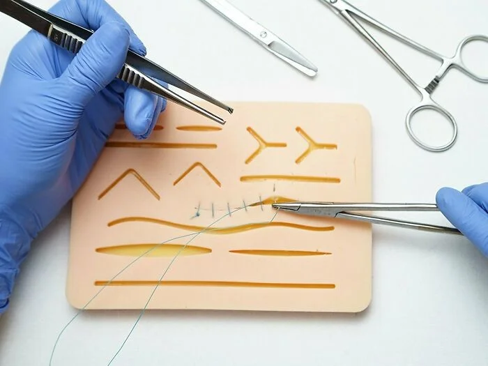 2. На чем хирурги тренируются накладывать швы