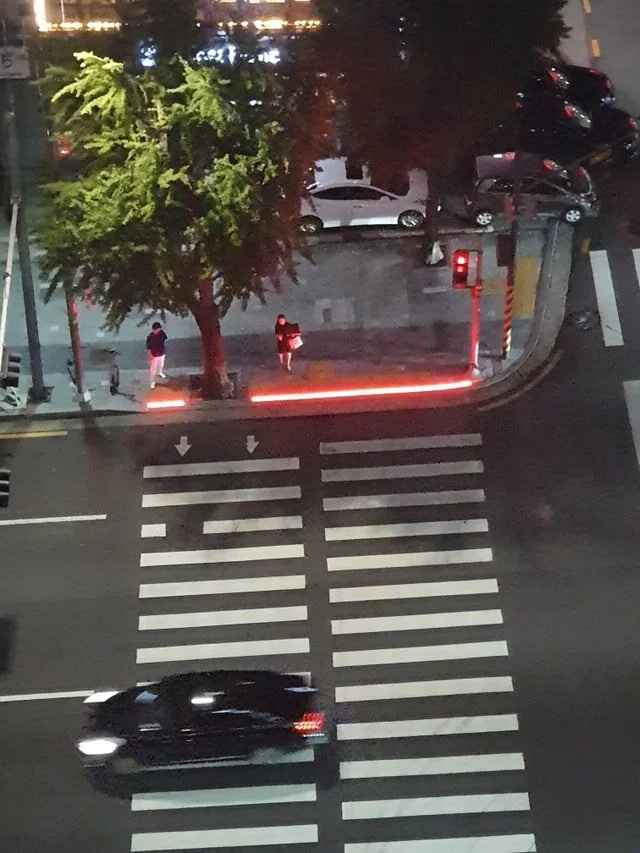 Пешеходный переход в Южной Корее с подсветкой прямо перед глазами людей