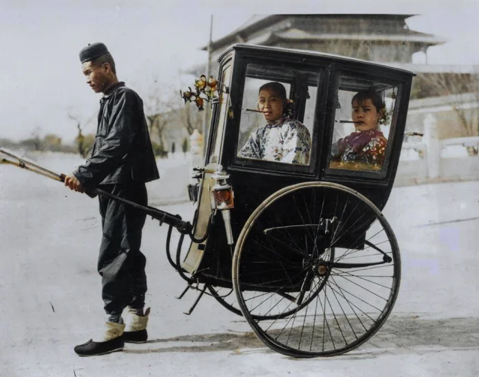 Первые рикши в Китае появились в середине XIX века в Гонконге, позже и в других крупных городах. В Поднебесную этот необычный вид транспорта пришёл из Японии.