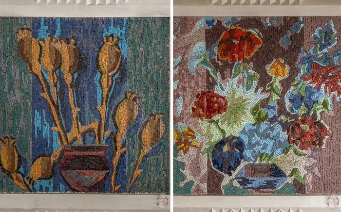 Первые секунды внутри и глаз тут же выделяет из интерьера оригинальные советские мозаики.