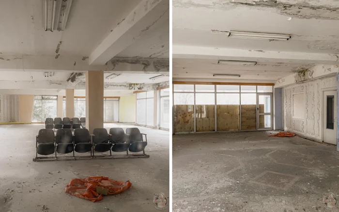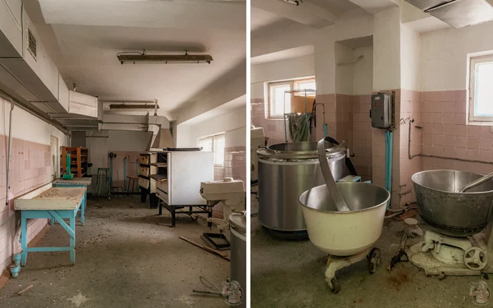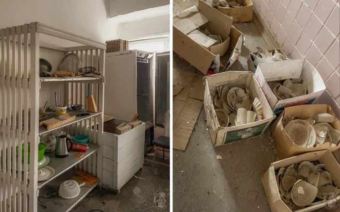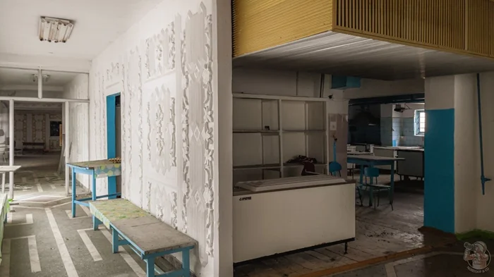 Столовая относилась к ныне закрытому советскому пансионату, о котором напоминает сохранившийся на стене распорядок дня.