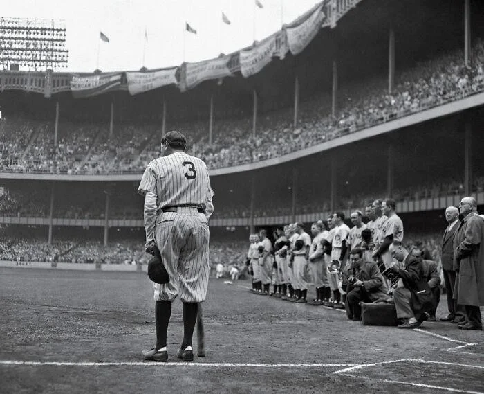 Первый снимок из мира спорта был сделан во время финального бейсбольного матча Джорджа Германа Эрхардта (он же «Бейб Рут»). Хотя Натаниэль Фейн был не единственным фотографом на том матче, он преуспел больше остальных, сделав фотографию, на которой Рут в форме с номером 3 опирается на свою битву как на трость, пока ему рукоплещет весь стадион. Рут скончался спустя два месяца после того, как Фейн сделал этот снимок.