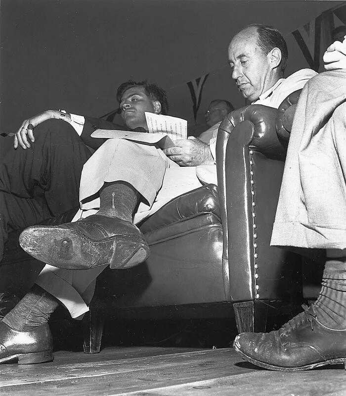 Уильяму М. Галлахеру пришлось встать на колени у сцены, чтобы сфотографировать кандидата в президенты от Демократической партии Адлая Стивенсона — в частности, дыру в его правом ботинке. После публикации снимка Стивенсона практически завалили новыми туфлями.