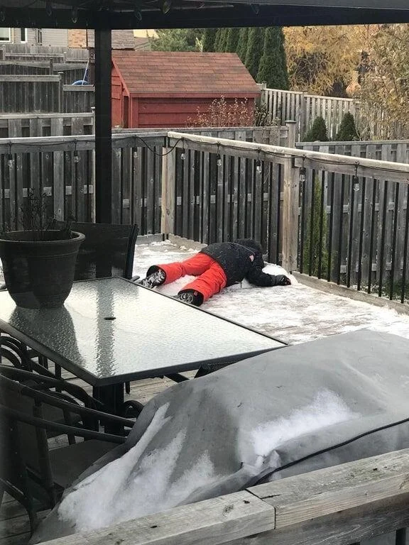 14. «Думаю, моему сыну понравился снег — даже несмотря на то, что он не мог пошевелить руками»