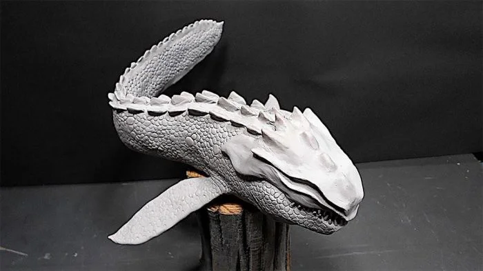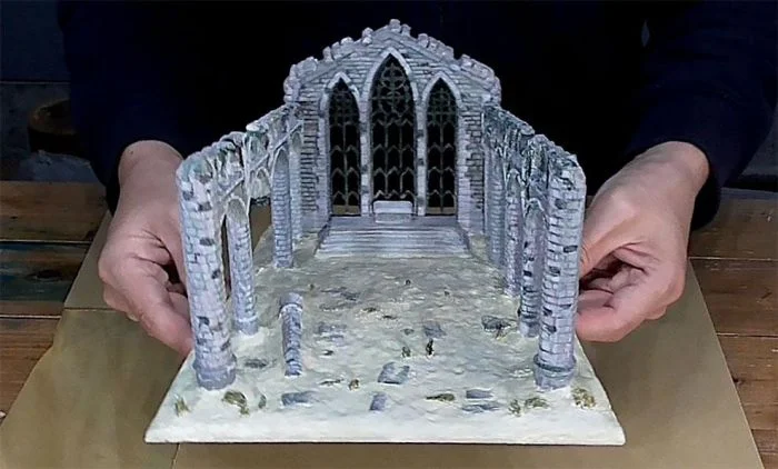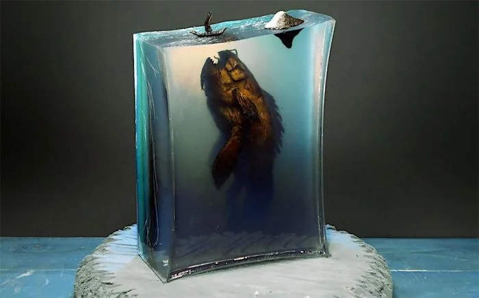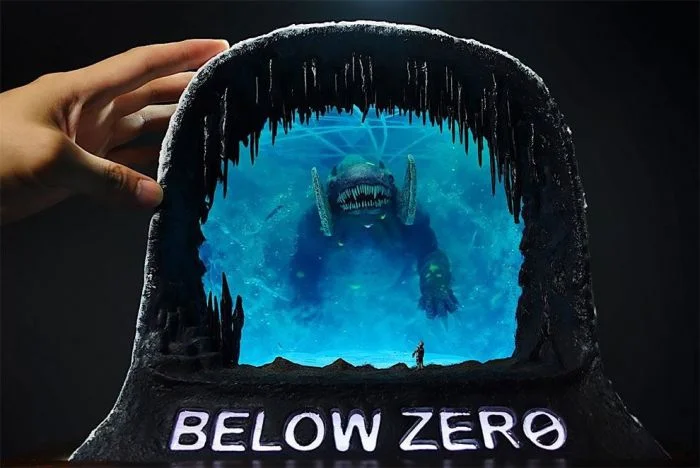 Недавно он получил множество положительных откликов за искусную диораму, которая изображает таинственный храм на скалистом побережье и китоподобное существо, поднимающееся из недр океана.