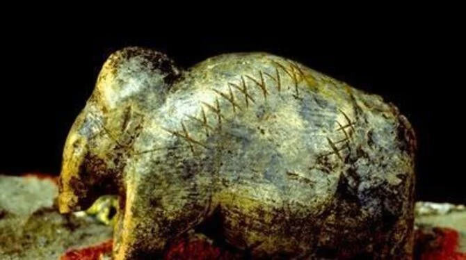 Мамонт, найденный в районе Альб-Донау, Германия, раскопанный в 1930-х годах и выставленный в городе Тюбингене. По самым скромным расчётам, поделке около 35 тыс. лет.