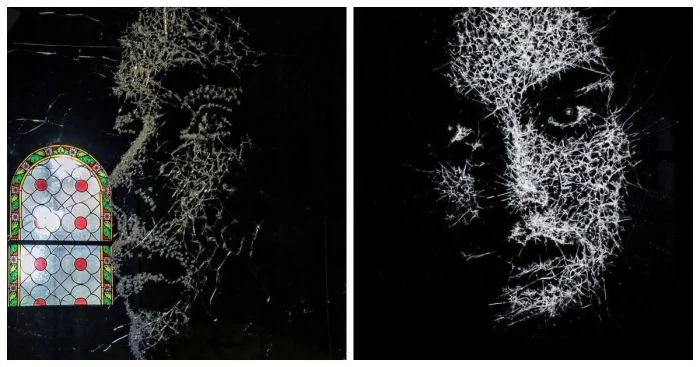 9. Художник Симон Бергер выбивает портреты на стекле с помощью молотка и зубила
