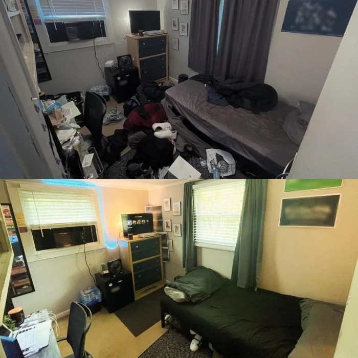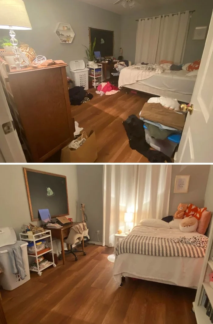 От природы в нас заложено чувство порядка, оно дарит ощущение спокойствия и комфорта. Однако людям, страдающим депрессией, бывает сложно выполнять даже самые элементарные домашние дела. Наведение порядка хотя бы в одной комнате способно придать сил и облегчить симптомы недуга. Перед вами мотивирующие фотографии "депрессивных комнат" до и после генеральной уборки.