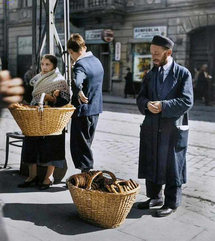 Семья торговцев бубликами. Варшава, Польша, 1938 год.