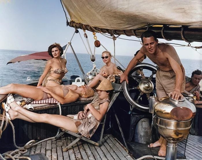 В 1955 году английский фото-журнал Picture Post отправил пять моделей в круиз по Франции, рекламировать новую летнюю британскую моду.