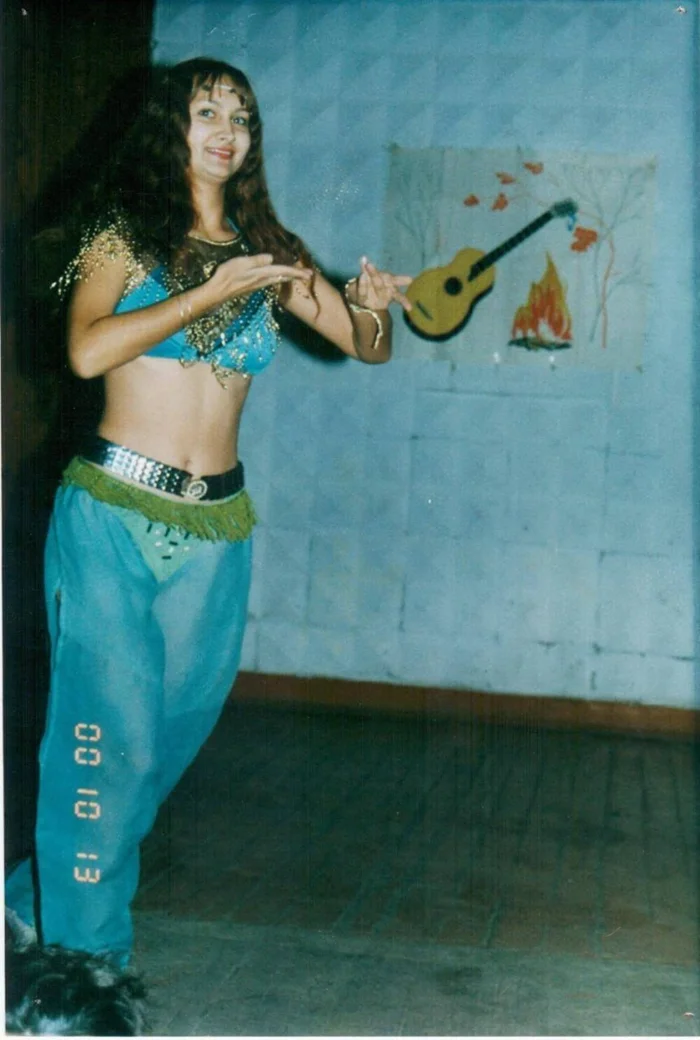 Участница конкурса «Мисс осень-2000» показывает танец живота, Алтайский край.