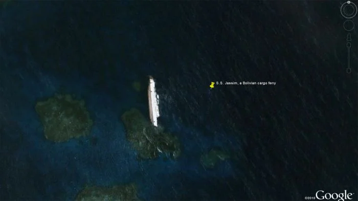 10. Судно SS Jassim заотнуло в 2003 году. Кораблекрушение было настолько крупным, что его удалось найти на Google Earth