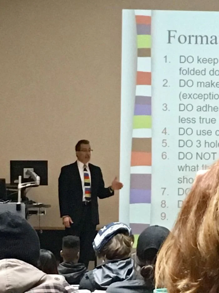 Сегодня мой профессор решил подобрать галстук в тон своей презентации