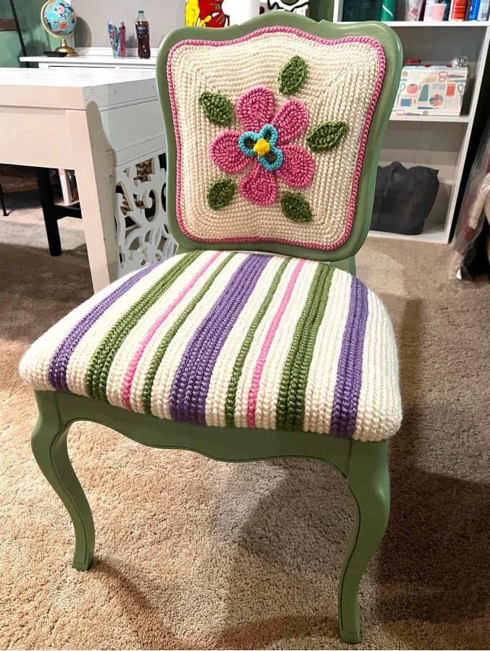 3. Я связала крючком обивку для старого стула. Ну разве не прелесть?