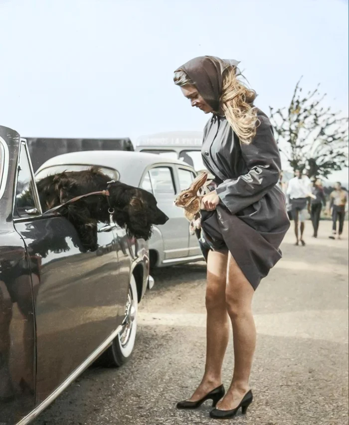 Брижит Бардо показывает кролика, 1956 год.