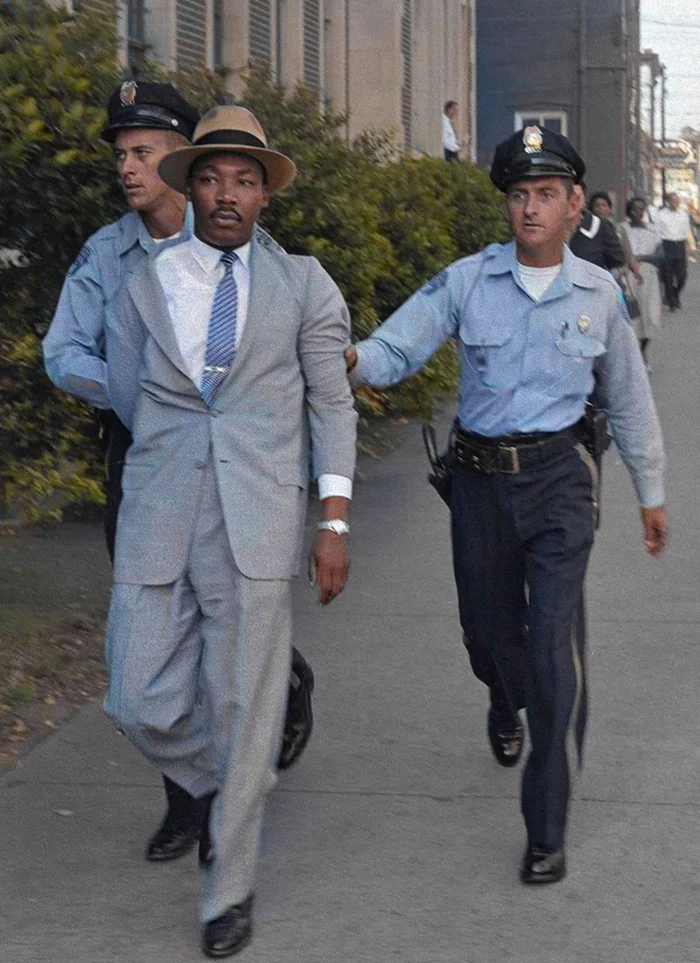 Арест Мартина Лютера Кинга за то, что он подал в суд на обслуживание в ресторане для белых. США, 1964 год.