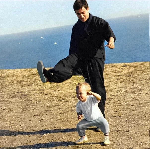 Брюс Ли обучает своего сына Брэндона боевым искусствам, 1966 год.