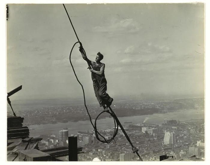 18. Кабельщик во время строительства Эмпайр-стейт-билдинг