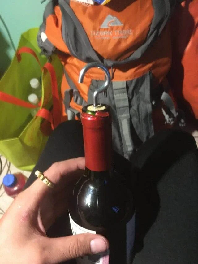 Эта идея может пополнить ряд бесчисленного множества альтернатив штопору, ведь в подобных ситуациях каждому из нас хотя бы раз приходилось импровизировать!