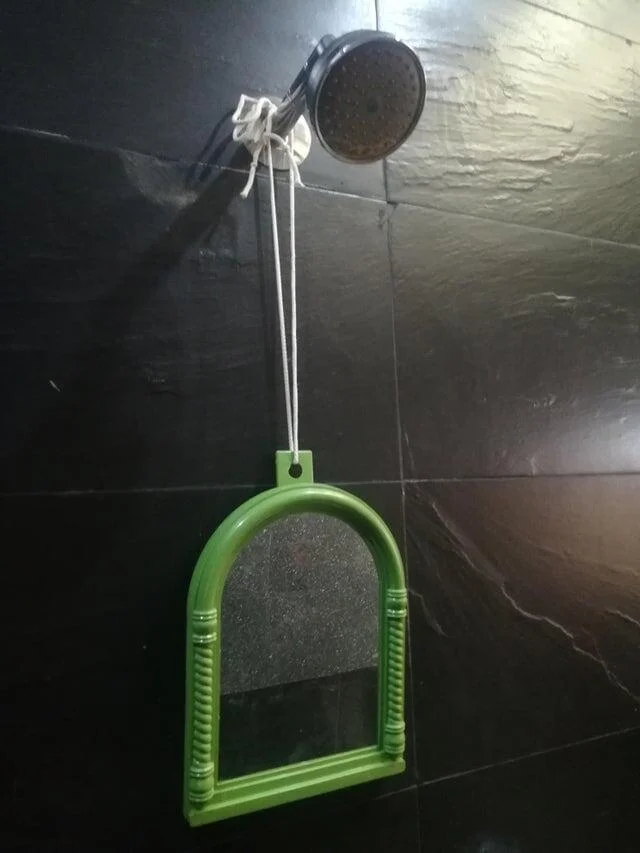 Хозяин квартиры не разрешил сделать отверстия на стене, чтобы повесить зеркало. Я решил вопрос по-другому