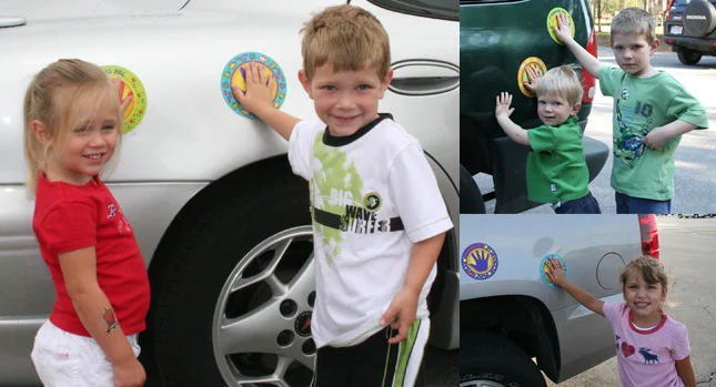 10. Такие наклейки в игровой форме научат детей не разбегаться на парковке