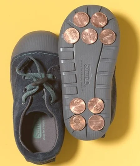 9. Пожертвуете мелочь на искусство? Прилепите монетки к подошвам старой пары обуви и получатся туфли для чечетки