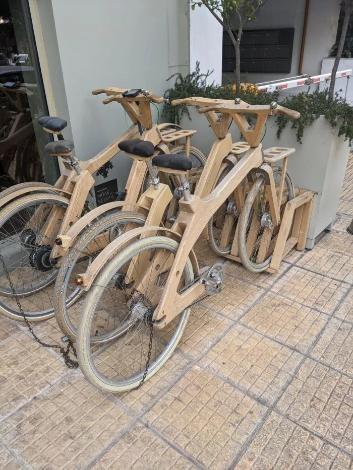 40. Деревянные велосипеды для постояльцев отеля в Греции