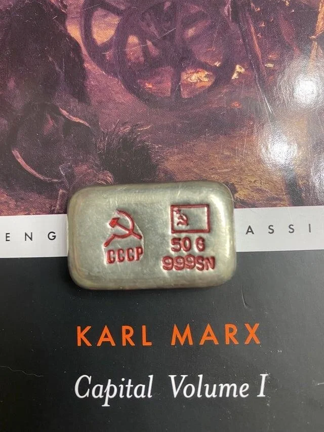3. Кусок металла из СССР, на нём есть надписи 50g и 999sn