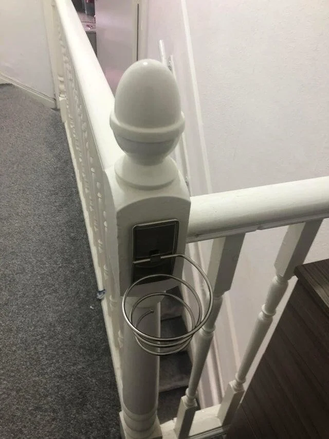 6. Нашёл это на перилах в нашем новом доме. Кажется, оно должно что-то держать, но вот что?