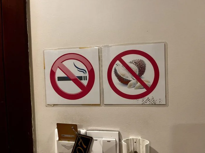 14. В гостиничном номере в Камбодже есть табличка "Без дуриана"