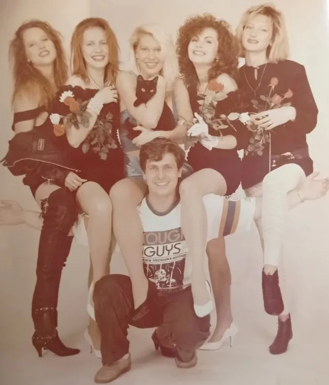 Участницы группы «Комбинация» со своим продюсером Александром Шишининым, начало 1990-х.