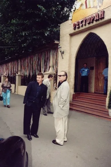 Актеры Джек Николсон и Шон Пенн перед входом в ресторан «Белое солнце пустыни». Москва, 2001 год.